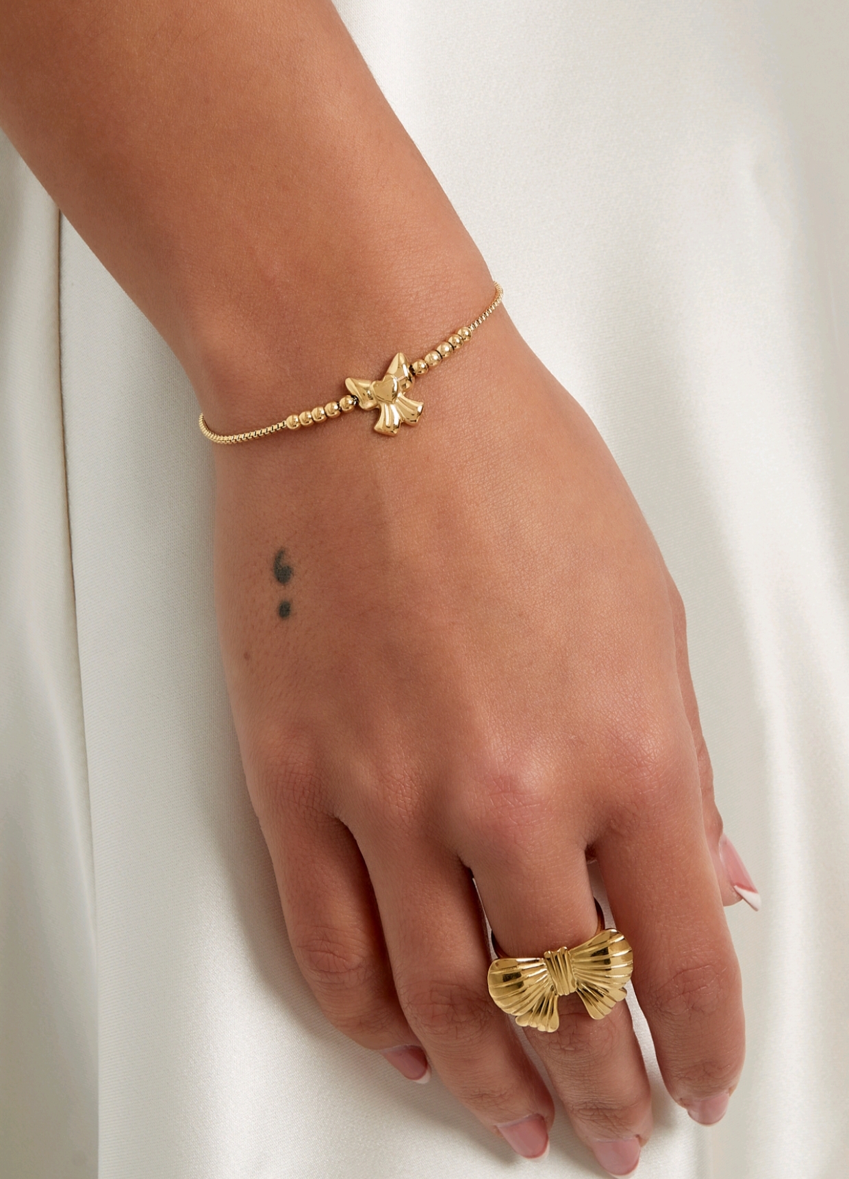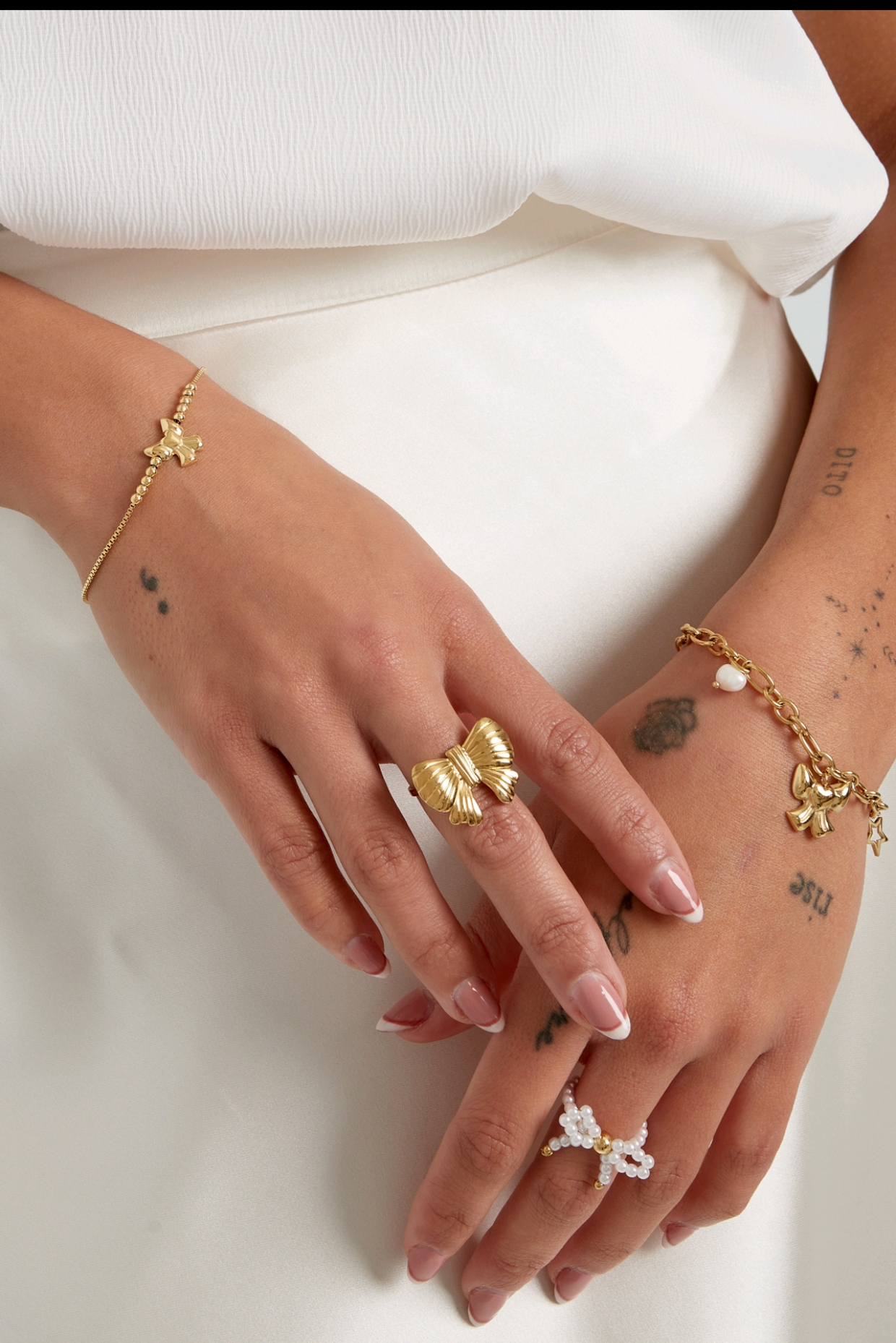 Sierlijke armband met een subtiel strikje.Ook leuk met onze strikjes oorbellen, zie de pagina sieraden sets voor een leuke aanbieding.Oorbellen te zien op foto 4.